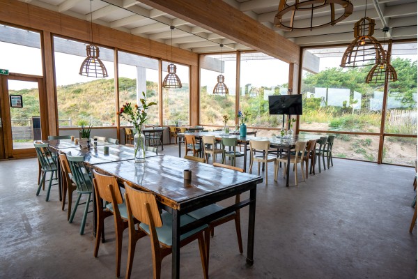 Midden in de Kennemerduinen staat Restaurant Gestrand, de perfecte plek om eens op een andere locatie dan kantoor, met elkaar te brainstormen. De grote ramen rondom deze unieke vergaderlocatie bieden een spectaculair uitzicht op de prachtige duinen.